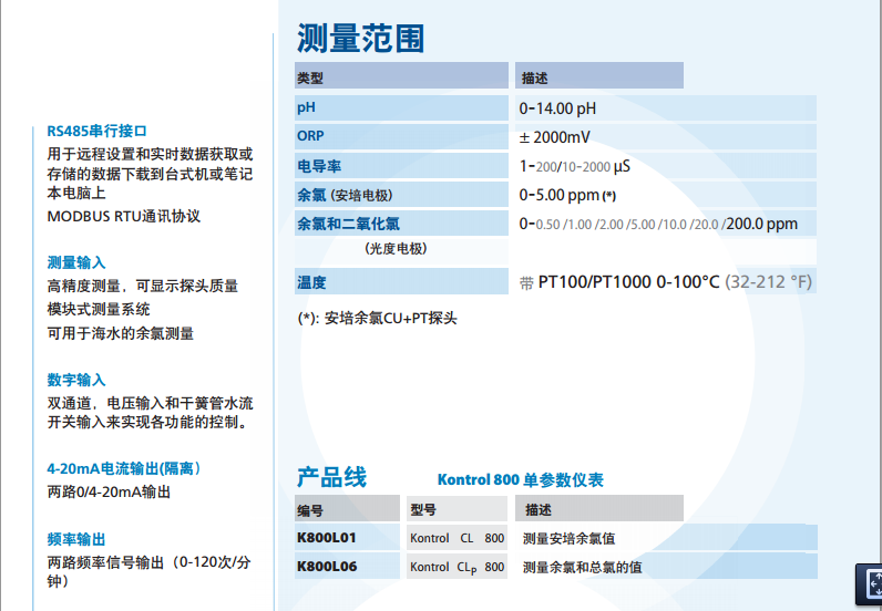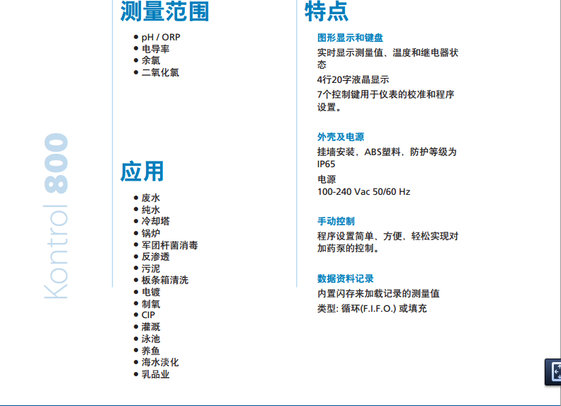 多參數(shù)水質(zhì)監(jiān)控儀是一款適用于需要同時監(jiān)控多個參數(shù)的復(fù)雜應(yīng)用場合的多參數(shù)儀表,具有獨(dú)立的比例控制輸出,兩路可調(diào)頻率輸出,RS485串行接口(MODBUS協(xié)議),三個繼電器輸出,探頭質(zhì)量顯示和數(shù)據(jù)記錄功能。