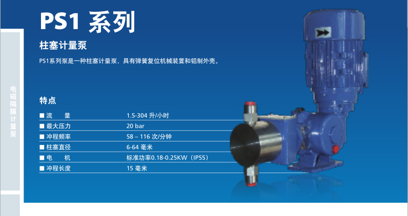 PS1系列泵是一種柱塞計(jì)量泵,具有彈簧復(fù)位機(jī)械裝置和鋁制外殼。